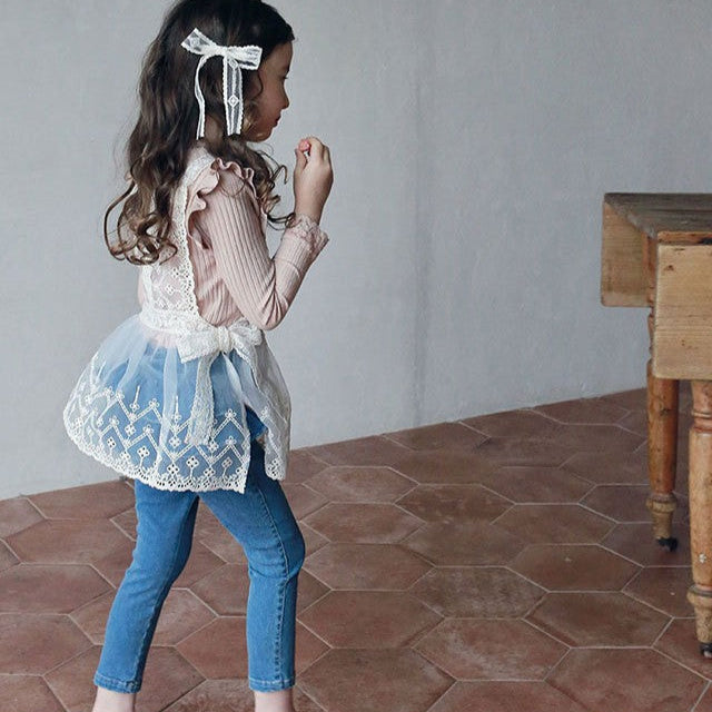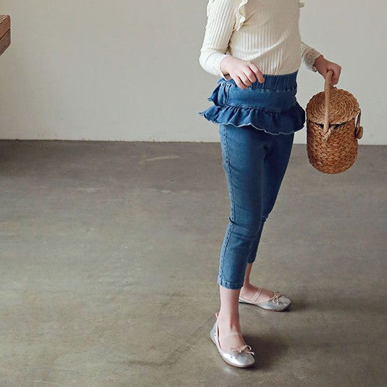 A playful twist on classic denim, these ruffle-layered jeans are perfect for adding a girly charm to any outfit. The tiered ruffle detail at the back gives it a skirt-over-jeans look while keeping the ease of pants.
